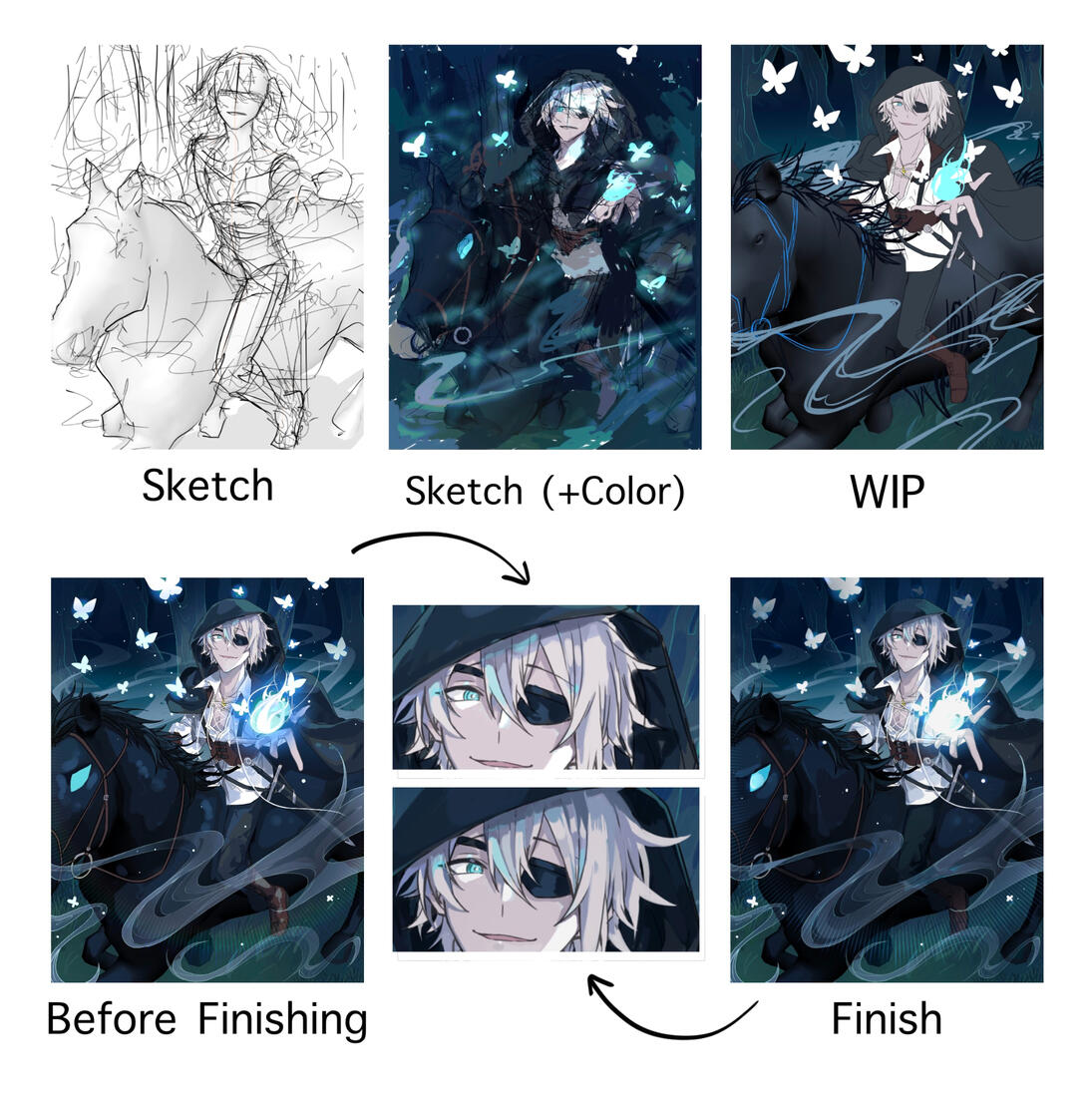 ภาพขั้นตอนการทำงาน แน่นอนว่าตอนรับงาน Sketch กับ Sketch (+Color) จะดูเรียบร้อยกว่านี้;;